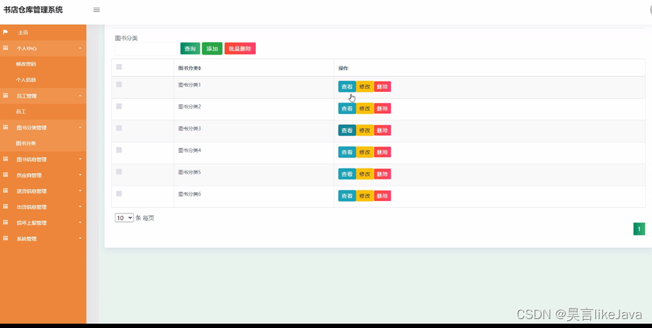 图书分类管理:通过列表可以获取图书分类等信息,进行修改或删除操作,如图5-4所示。