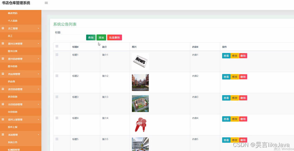 该博客介绍了书店仓库管理系统,针对书店仓库管理问题进行整体布置。项目前端用easyui、jsp等,后端采用SSM框架。开发环境涉及Tomcat、JDK、MySql等。系统为使用者提供便利管理平台,介绍了管理员、前台首页、员工三个功能模块。