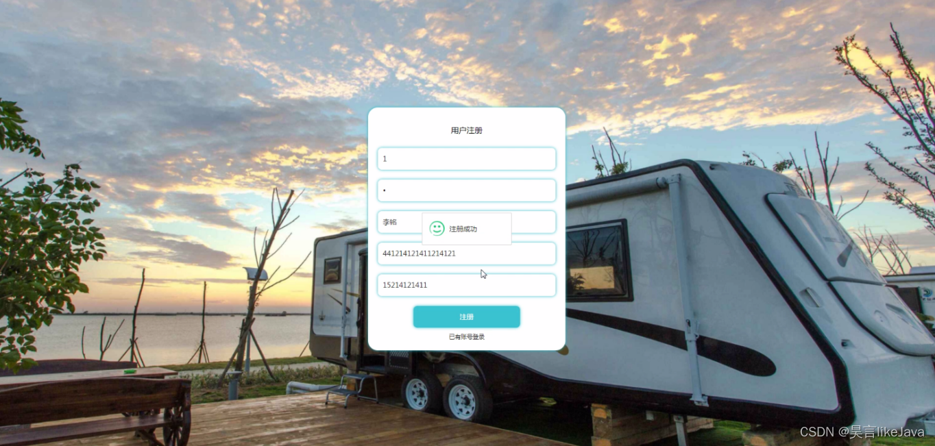 登录、用户注册,在用户注册页面可以填写用户名、密码、姓名、性别、头像、身份证、手机等信息进行注册,如图5-2所示。
