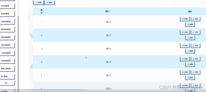 部门管理;在部门管理页面中可以查看索引、部门等内容进行详情、修改或删除等操作;如图4-12所示。