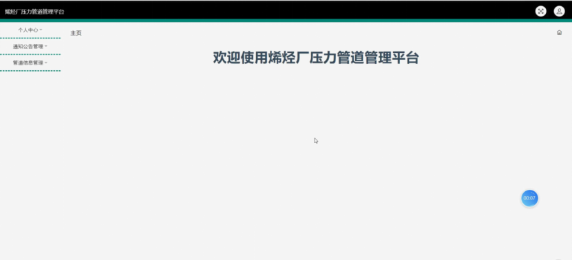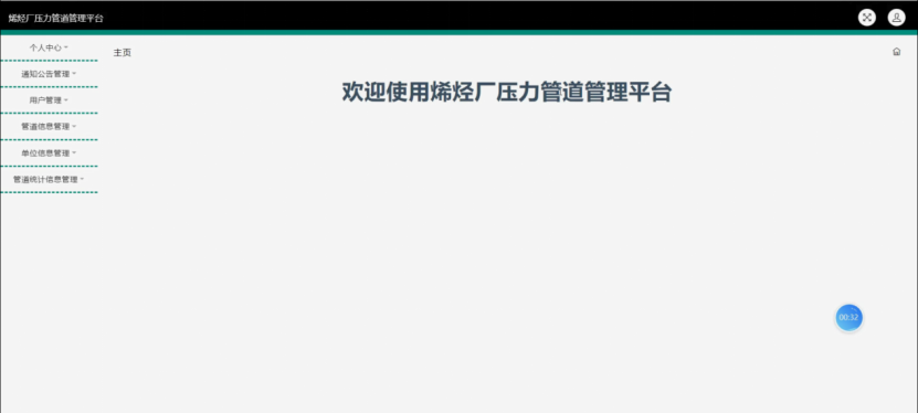 用户登录进入烯烃厂压力管道管理平台可以对主页、个人中心、通知公告管理、管道信息管理等功能进行详细操作,如图5-8所示。
