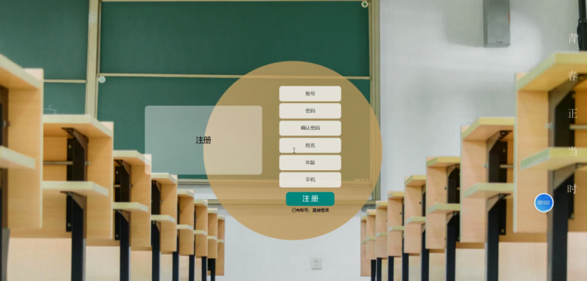 用户注册,在用户注册页面通过填写账号、密码、确认密码、姓名、年龄、手机等信息进行注册操作,如图5-2所示。