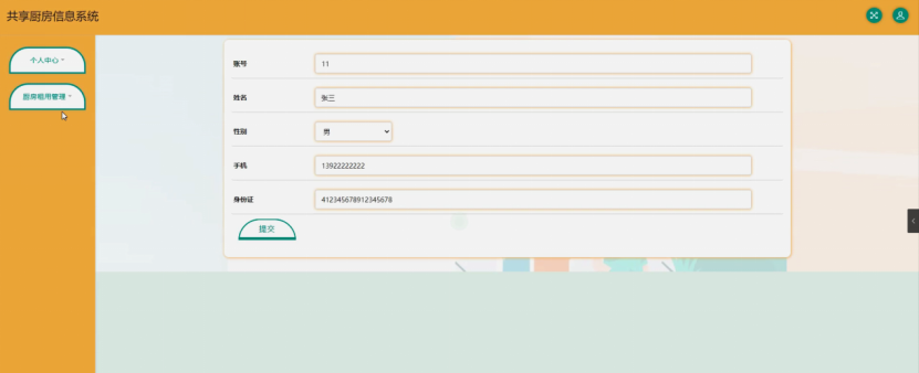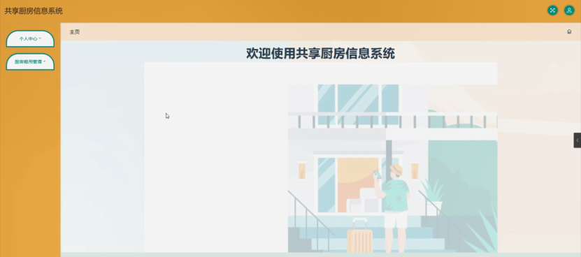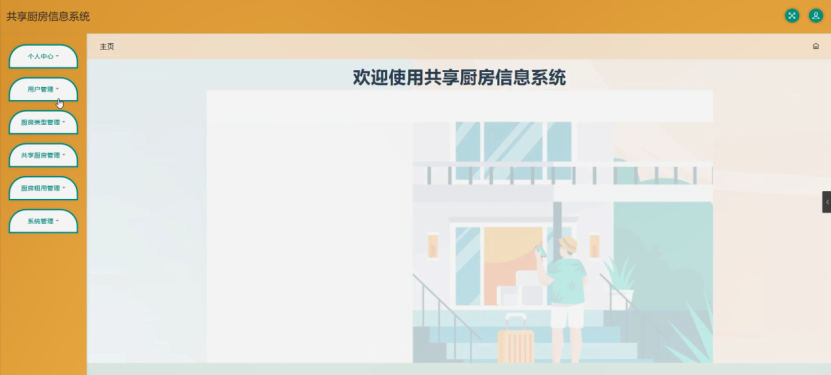 用户登录进入系统,点击后台管理可以对主页、个人中心、厨房租用管理等功能进行详细操作,如图5-12所示。