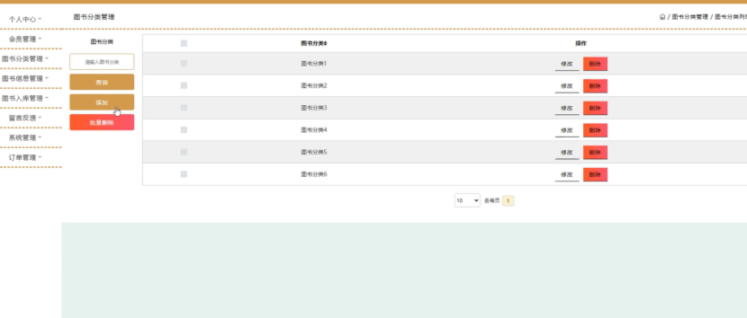 图书分类管理;在图书分类管理页面中可以对图书分类等内容进行修改或删除等操作;如图4-9所示。