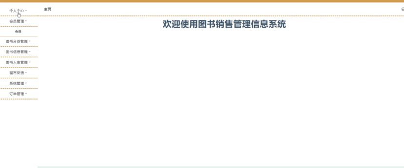 管理员登录进入图书销售管理信息系统可以查看主页、个人中心、会员管理、图书分类管理、图书信息管理、图书入库管理、留言反馈、系统管理、订单管理等信息进行详细操作,如图4-7所示。
