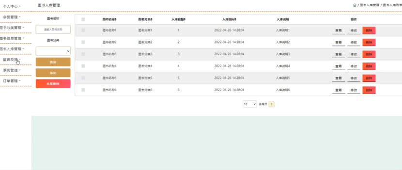 图4-11图书入库管理界面图