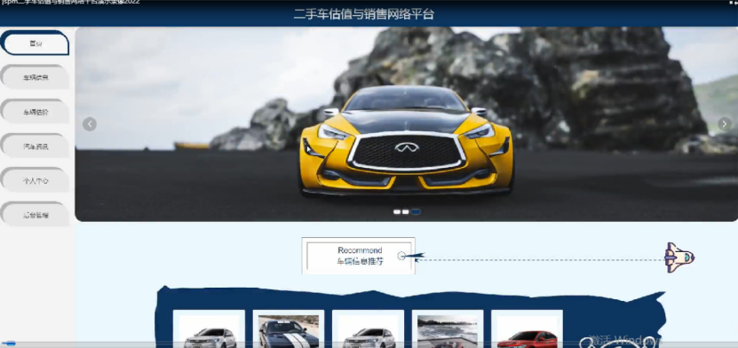 二手车估值与销售网络平台,用户进入到平台首页可以查看首页,车辆信息,车辆估价,汽车资讯,个人中心,后台管理等内容进行操作,如图4-1所示。