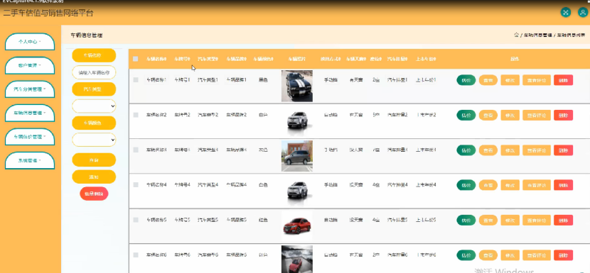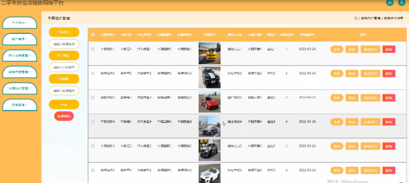 本系统主要包括个人中心,客户管理,汽车分类管理,车辆信息管理,车辆估价管理,系统管理等功能,通过这些功能的实现基本能够满足日常二手车交易管理的操作。