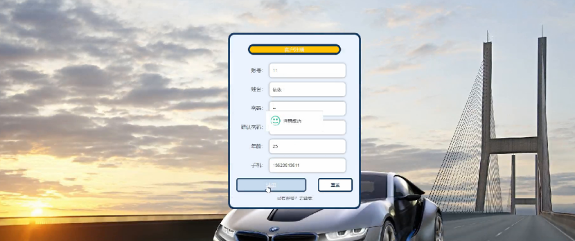 用户注册;在用户注册页面中输入账号,姓名,密码,确认密码,年龄,手机等内容进行用户注册操作,如图4-2所示。