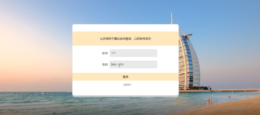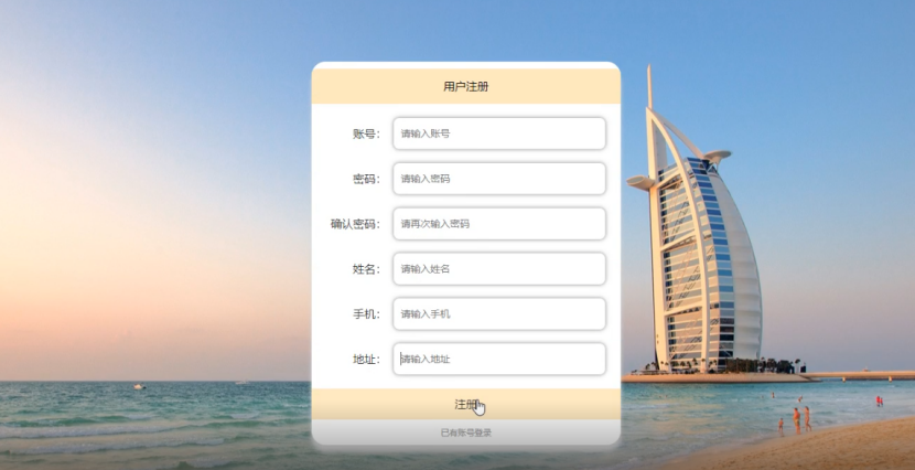 度假山庄酒店管理系统的用户,必须得进行注册。如下所示: