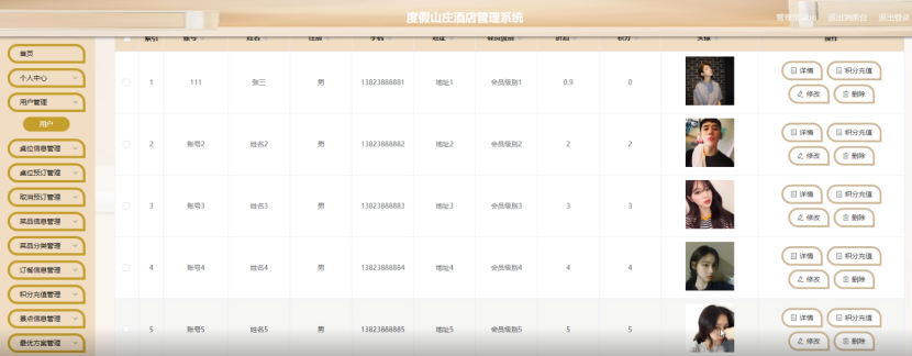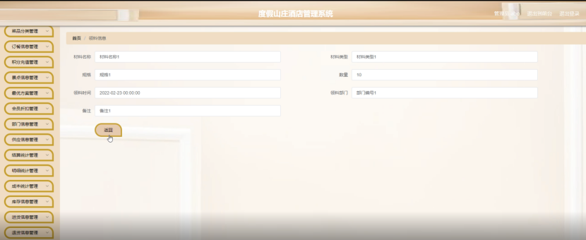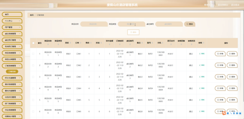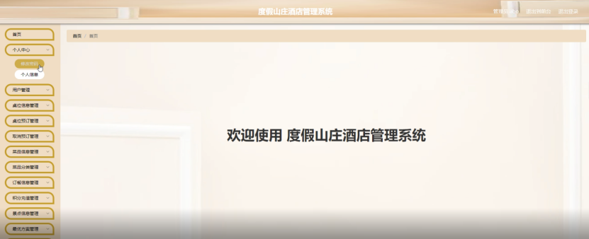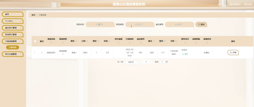 度假山庄酒店管理系统,前端的用户可以使用Vue,后台管理使用基于SpringBoot+Mysql的B/S架构,通过后台设置酒店菜品信息、录入特色酒店菜品信息等。度假山庄酒店管理系统系统体现以宾客为中心,提供快捷、方便的服务,给宾客一种顾客至上的享受,提高酒店的管理水平,简化各种复杂操作,在最合理最短时间内完成酒店业务规范操作,这才能令旅客舒适难忘,增加客户回头率。