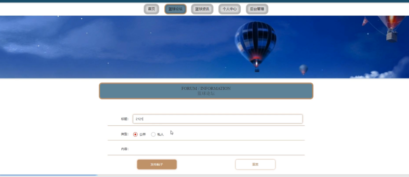 篮球论坛,在篮球论坛页面可以查看标题、类型、内容等内容进行发布帖子等操作,如图5-3所示。