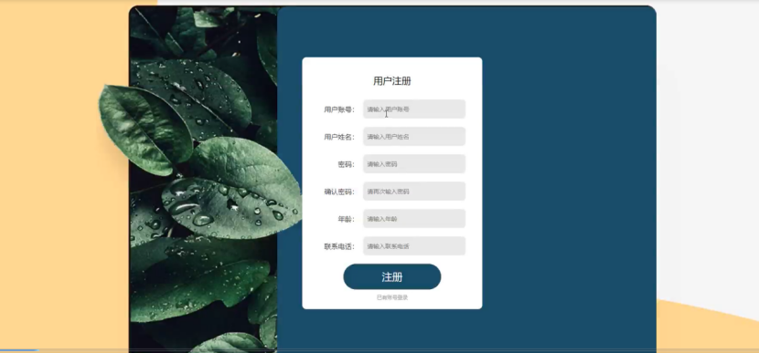 用户注册,在用户注册页面通过填写,用户账号、用户姓名、密码、确认密码、年龄、联系电话等内容进行注册等操作等信息进行注册操作,如图5-2所示。