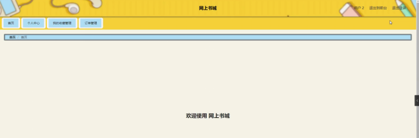 用户登录进入系统后台,可以对首页、个人中心、我的收藏管理、订单管理等功能进行相应操作,如图5-14所示。