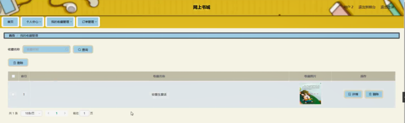 我的收藏管理,在我的收藏管理页面可以对索引、收藏名称、收藏图片等内容进行详情或删除操作,如图5-16所示。