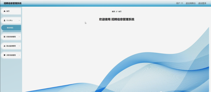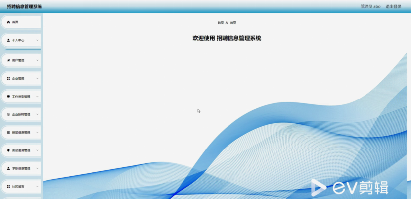 管理员登录系统后,可以对首页、个人中心、用户管理、企业管理、工作类型管理、企业招聘管理、投简信息管理、面试邀请管理、求职信息管理、社区留言、系统管理等功能进行相应操作,如图5-7所示。