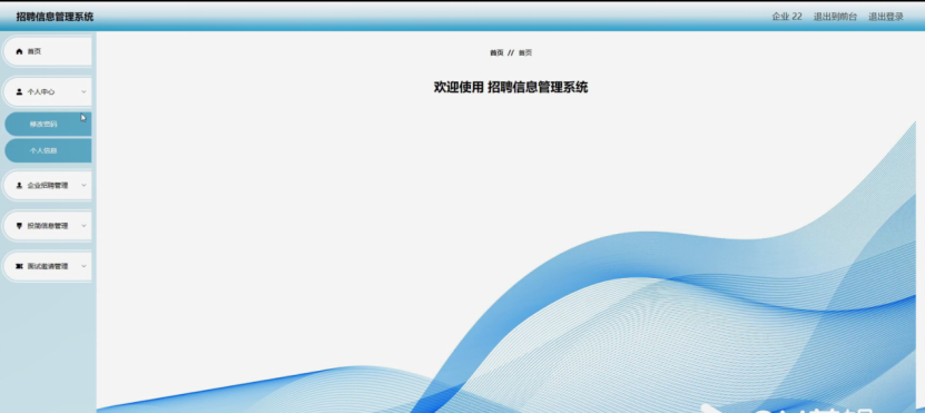 企业登录进入招聘信息管理系统,可以对首页、个人中心、企业招聘管理、投简信息管理、面试邀请管理等功能进行相应操作,如图5-16所示。