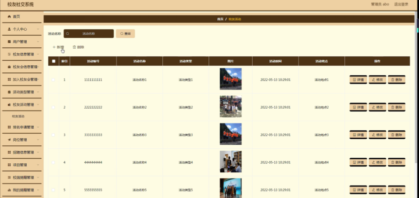 图5-11校友活动管理界面图