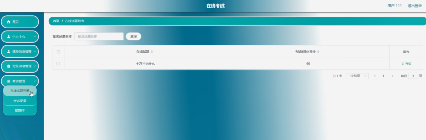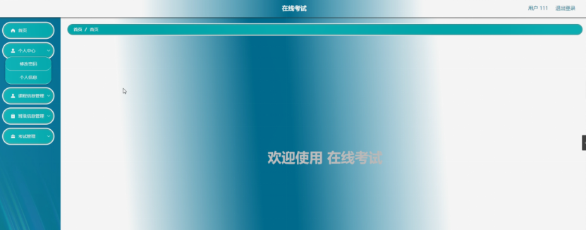 用户登录进入在线考试系统可以对首页、个人中心、课程信息管理、班级信息管理、考试管理等功能进行相应操作,如图5-10所示。