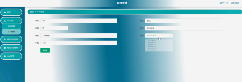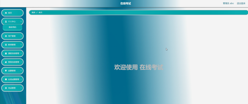 管理员登录系统后,可以对首页、个人中心、用户管理、教师管理、课程信息管理、班级信息管理、试题管理、在线试题管理、考试管理等功能进行相应的操作管理,如图5-3所示。