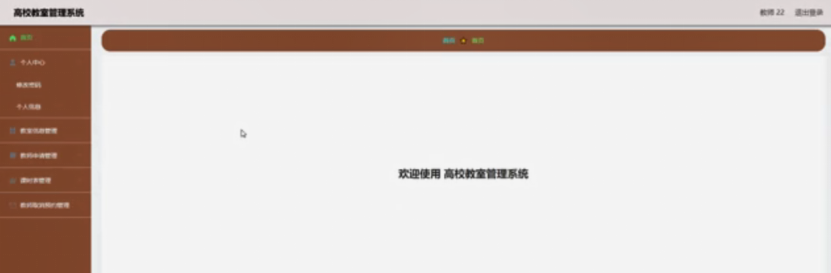 教师登录进入高校教室管理系统可以查看首页、个人中心、教室信息管理、教师申请管理、课时表管理、教师取消预约管理等内容进行详细操作,如图5-16所示。
