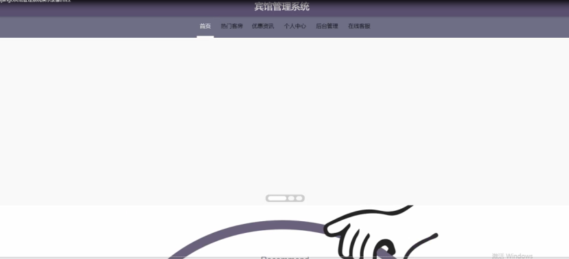 宾馆管理系统,在系统首页可以查看首页、热门客房、优惠资讯、个人中心、后台管理、在线客服等内容进行详细操作,如图5-1所示。