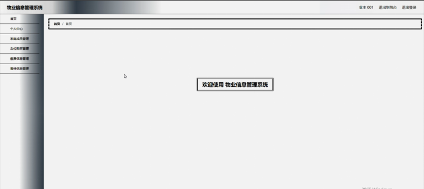 业主登陆系统,可以查看首页、个人中心、家庭成员管理、车位购买管理、缴费信息管理、报修信息管理等功能,还能对每个功能逐一进行相应操作,如图5-16所示。