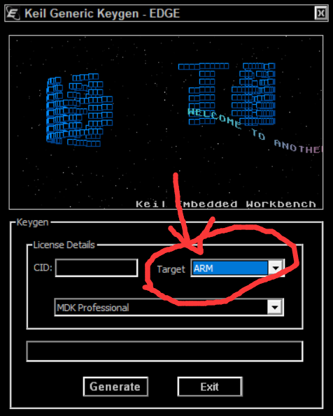 我又打开了keygen,调节了target的设置,将C51修改为ARM,再来得到破解密码。