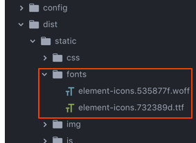 (1)查看 /build/webpack.base.conf.js 文件可以发现,woff 或 ttf 这些字体会经由 url-loader 处理后在 static/fonts 目录下生成相应的文件。