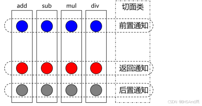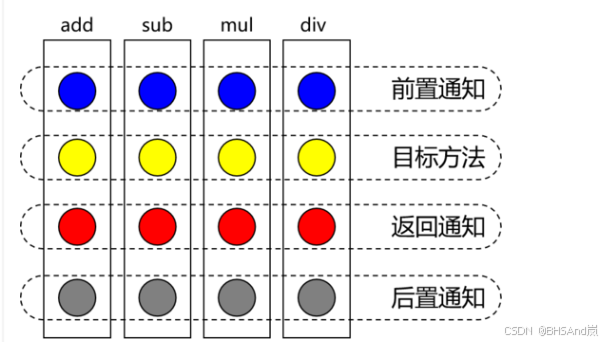 每一个横切关注点上要做的事情都需要写一个方法来实现,这样的方法就叫通知方法。