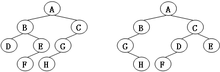 给定两棵树 T1 和 T2。如果 T1 可以通过若干次左右孩子互换就变成 T2,则我们称两棵树是“同构”的。例如图1给出的两棵树就是同构的,因为我们把其中一棵树的结点A、B、G的左右孩子互换后,就得到另外一棵树。而图2就不是同构的。
