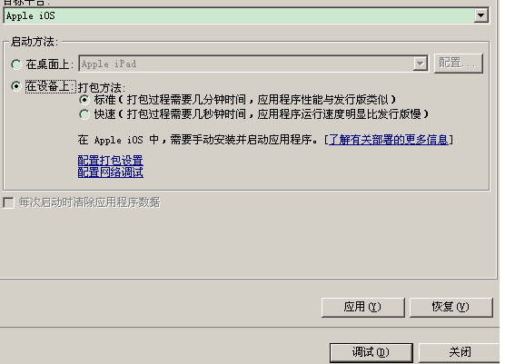 这样就会编译一个ipa,而且这个ipa 比较小,是用于调试版本的ipa 文件。调试时,安装好程序之后,运行程序,这样就可以连接到flash builder 了。