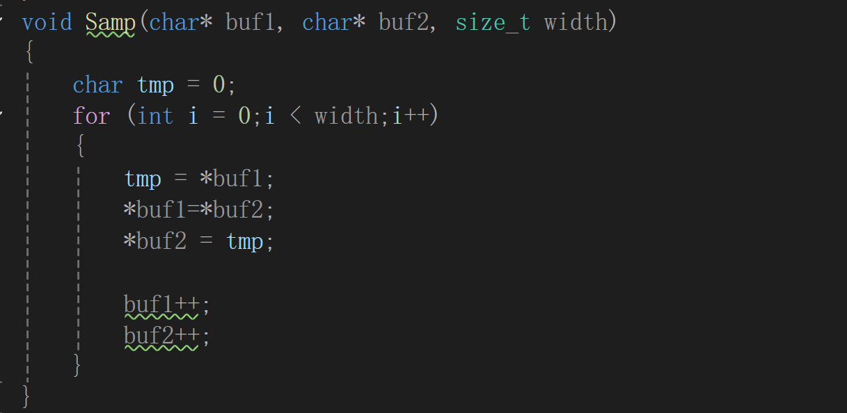 Samp是自定义的 “通用交换函数”(需要自己实现):接收两个元素的地址和元素宽度,交换这两个元素的内容(这样不管是 int、结构体,都能正确交换)- 原理:数组中第