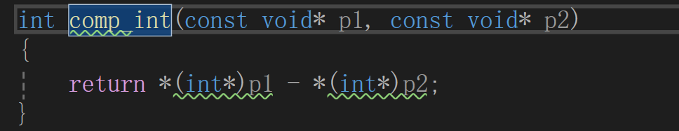 *(int*)p1 - *(int*)p2- 先将