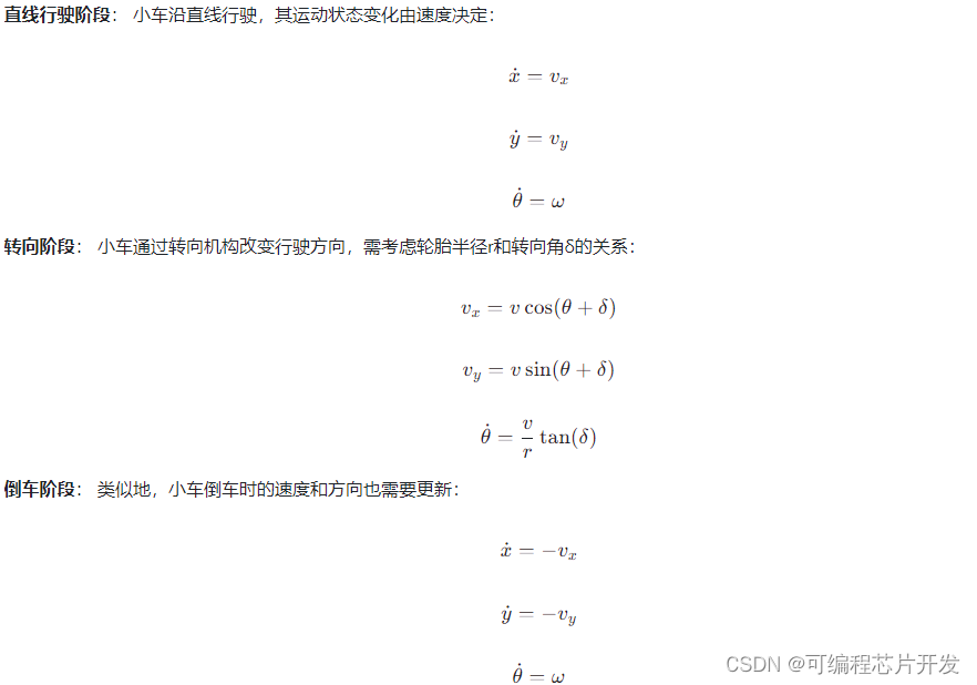 侧方位停车的过程可以拆分为直线行驶、转向、倒车和微调等阶段,对于每一个阶段,可以分别建立相应的运动学方程: