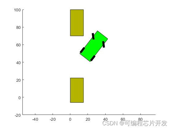 小车侧方位停车过程的动态模拟matlab仿真。仿真得到小车的停车动画,小车移动的xy轴坐标以及角度变换。