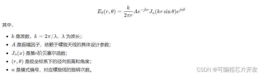 单臂螺旋天线的设计可基于Balanis提出的经典模型,辐射场分布可用以下表达式描述: