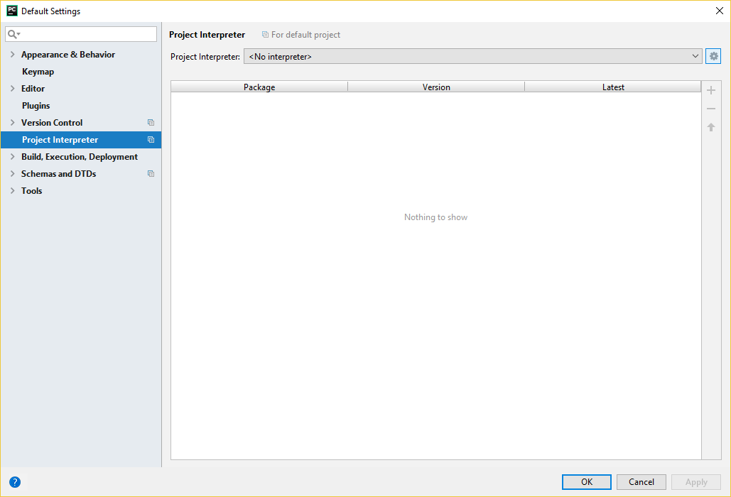 在设置页面中,选择“项目解释器”-您可以在此处添加其他解释器以在整个项目中使用。对于可能已经存在的解释器,此处显示的内容可能有所不同。