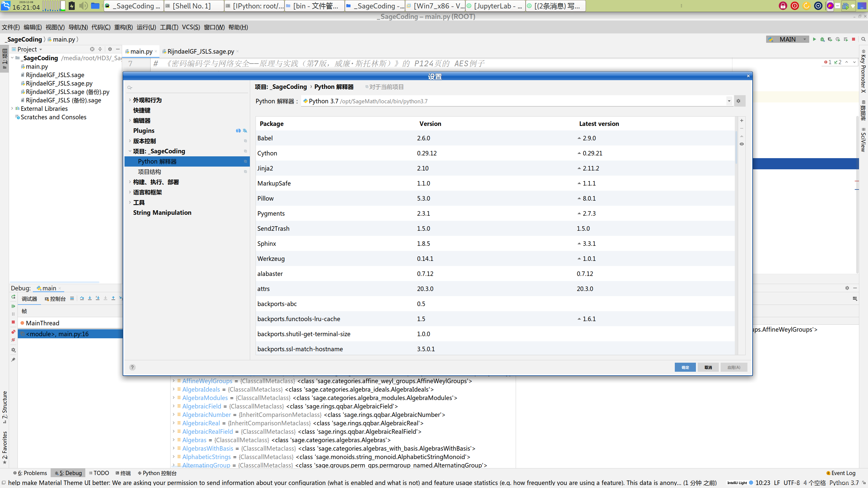 配置PyCharm以调试Sage数学库的Python源代码