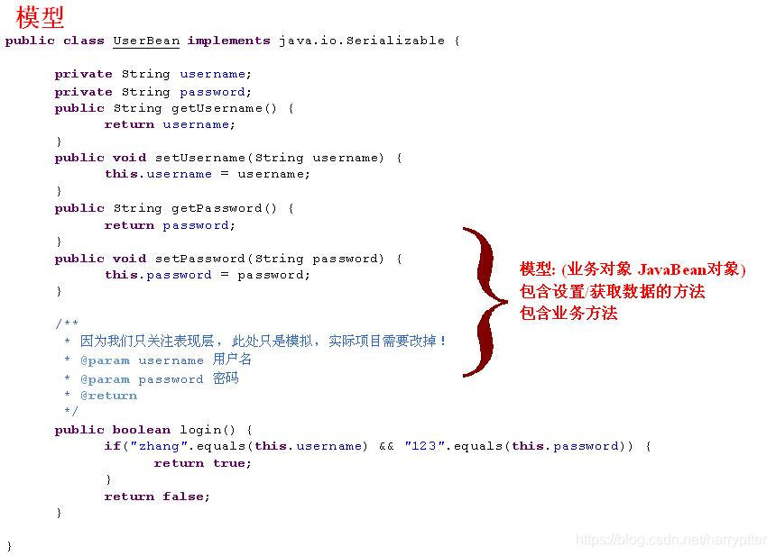 1.2.1、此处模型使用JavaBean,可能造成JavaBean组件类很庞大,一般现在项目都是采用三层架构,而不采用JavaBean。