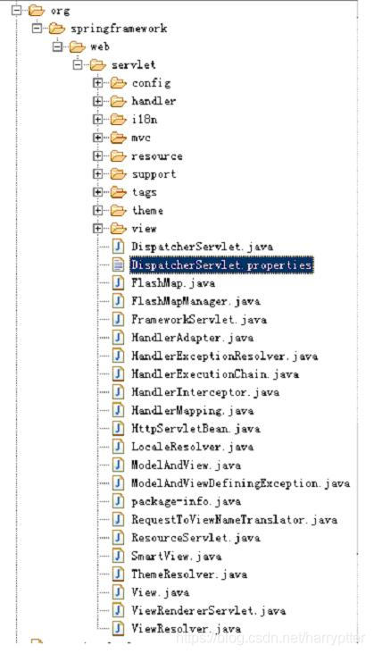 DispatcherServlet的默认配置在DispatcherServlet.properties(和DispatcherServlet类在一个包下)中,而且是当Spring配置文件中没有指定配置时使用的默认策略: