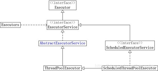 ExecutorService接口继承了Executor,在其上做了一些shutdown()、submit()的扩展,可以说是真正的线程池接口;