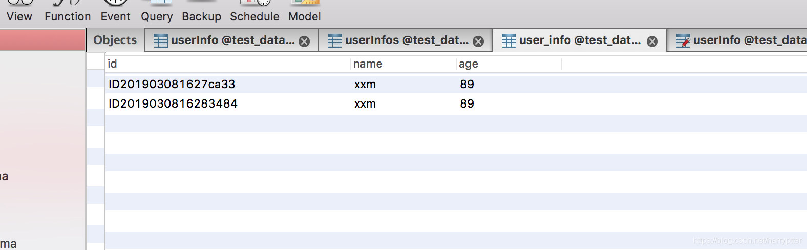 我这边现在自己mysql中建立一个数据库test_data,建立表user_info;表结构: