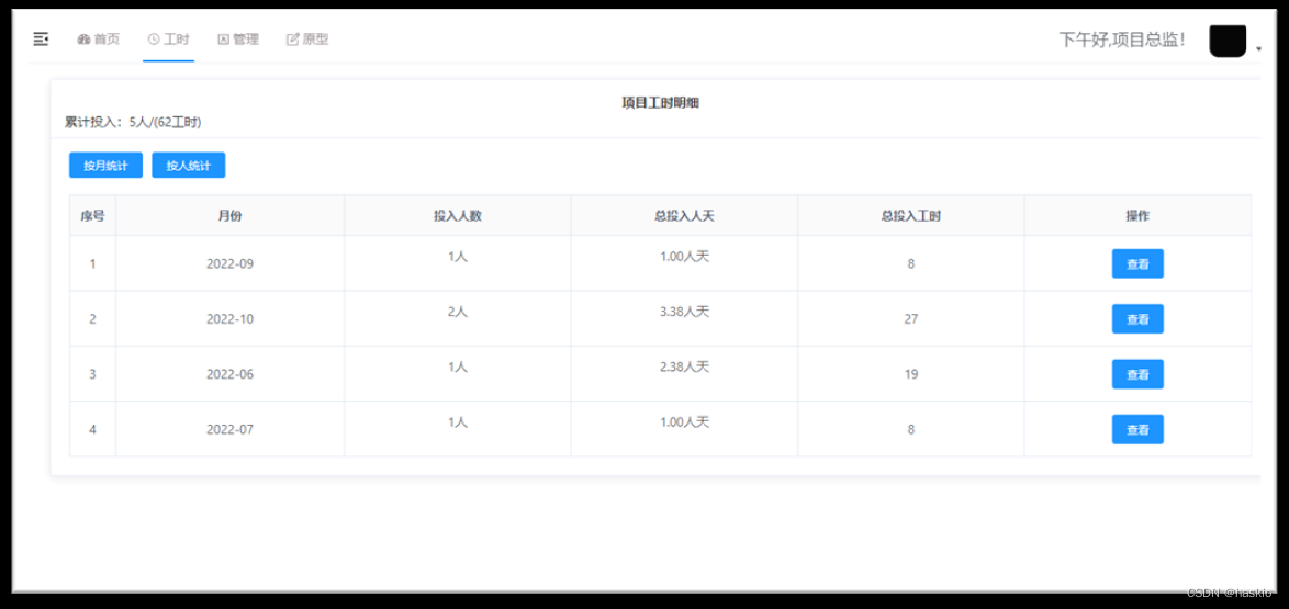 从管理视角设计系统功能,实时在线收集和分析项目工时数据。