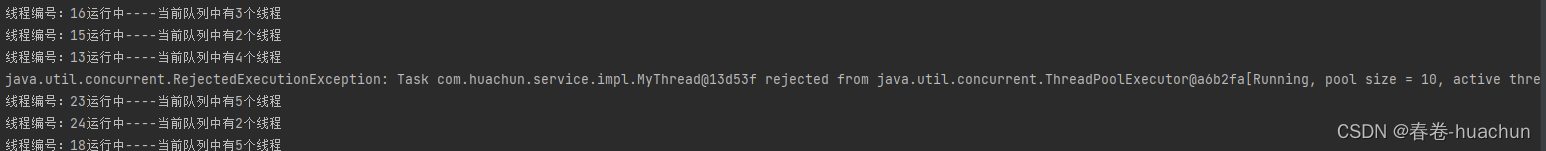 executor.execute(new MyThread(i, executor.getQueue().size()));