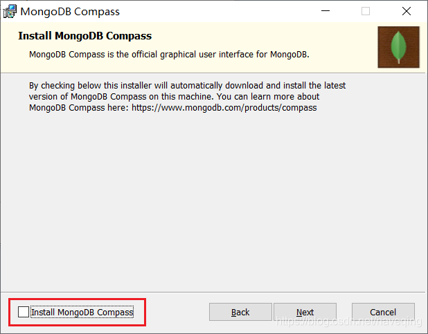 6.不要勾选Install MongoDB Compass。勾选了,他下载特别慢,会超时。