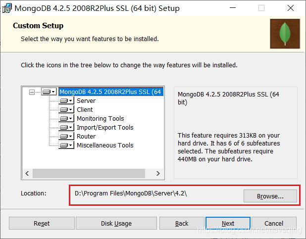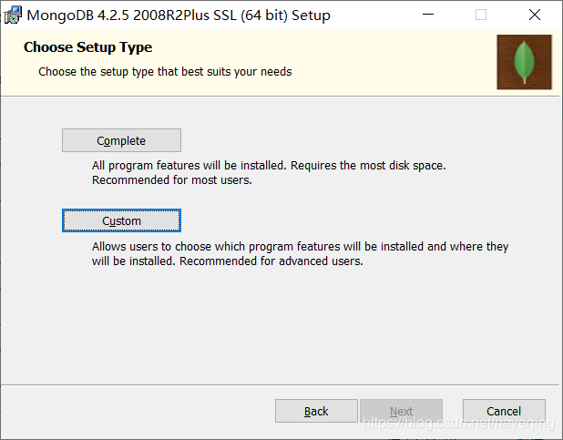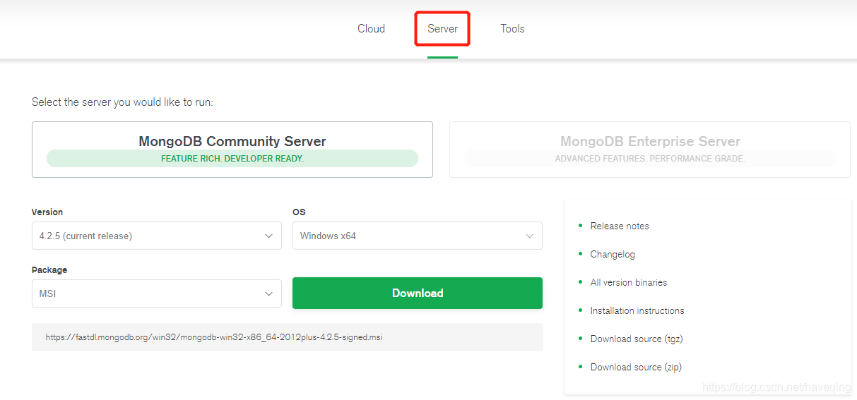 选Server下载:mongodb-win32-x86_64-2012plus-4.2.5-signed.msi