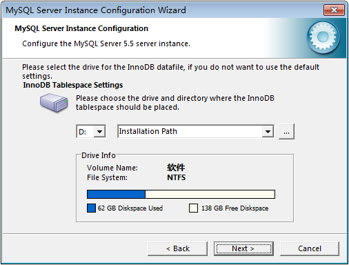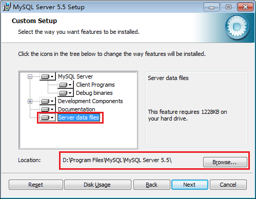 D:\Program Files\MySQL\MySQL Server 5.5\ (后面的data目录他会自动加)