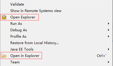 右键菜单,Open in Explorer是Eclipse Explorer 4.0.0