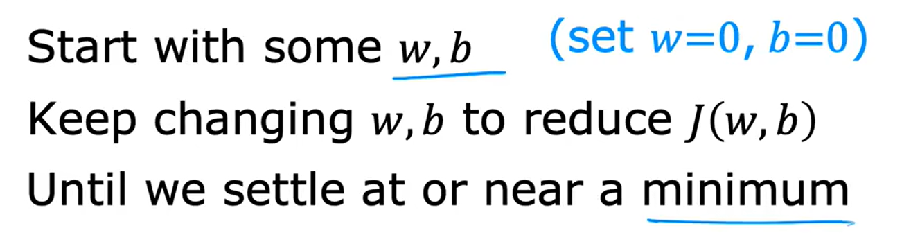 有了J(w,b) ,这个损失函数不只是限于线性回归,对于其他函数也一样,只要是目的是为了寻找最小的J下的w和b即可。